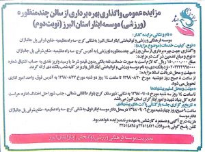• مزایده عمومی واگذاری بهره برداری از سالن چند منظوره
